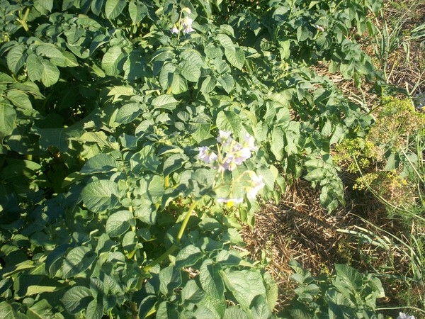Собственно картофель так же выращивается у меня и на товарном участке. Но на семенном высаживается позже. Тем, кто не применяет мульчу на всей картофельной делянке, стоит попробовать прием хотя бы на семенном. Семенные клубни, развившиеся в лучших условиях, дадут на следующий год лучший урожай, а потому нужно постараться облегчить жизнь картофеля хотя бы на семенном участке.