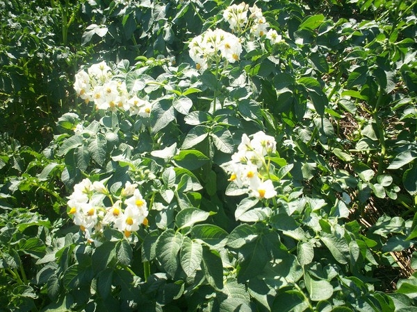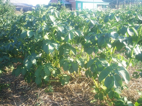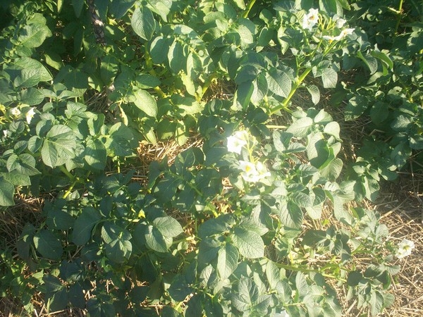 При температуре почвы ниже 6 °C и выше 23 °C прирост клубней резко задерживается, а при 2 °C и выше 27-29 °C прекращается. Если в период формирования и роста клубней стоит продолжительная жаркая погода (30-40 °C), то наблюдается быстрое вырождение картофеля. Оно заключается в нарушении обмена веществ, снижении урожая. Ослабленные растения больше поражаются вредителями и болезнями. Для формирования хорошего урожая картофелю нужно прохладное лето с дневными температурами не выше 25С и ночными не выше 10-15С. Оптимальная температура для роста и развития картофеля составляет 18-20С. Толстый слой мульчи на моем участке не позволяет почве нагреваться. Нет и резких скачков почвенной температуры, мульча почвенную температуру стабилизирует. Но вот температуру воздуха не снизишь. Этот вопрос решается поздней посадкой семенного участка. Картофель на моем семенном участке в конце июля только зацветает, а урожай накапливает в августе-сентябре. А август уже более прохладный и больше осадков.
