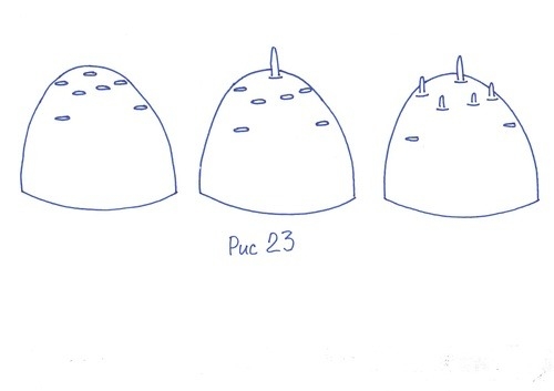 Вы разрезали клубень. Количество стволов, выросших из одного клубня, обязательно увеличится. Но здесь нет прямой зависимости. Давайте рассмотрим этот вопрос подробней. Например, вершина имеет 7 наклюнувшихся глазков (см. рис 23).