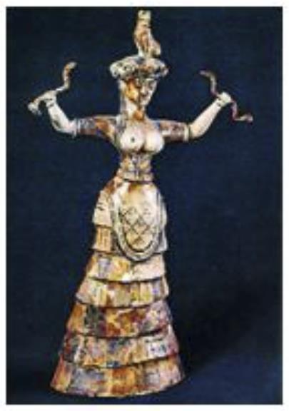 Жизнь критян осложняли природные катаклизмы. Землетрясения, частые в этих местах морские штормы, сопровождающиеся грозами и ливневыми дождями, засушливые годы – все это периодически обрушивалось на Крит. Защитой жителям служили боги. Центральной фигурой минойского пантеона была великая богиня – «владычица». Так именуют ее надписи, найденные в Кноссе и в некоторых других местах. В этом разноликом образе угадываются общие черты древнего божества плодородия – великой матери всех людей, животных и растений, почитание которой было широко распространено в странах Средиземноморья, начиная с эпохи неолита. Другой образ – это образ могучего и свирепого бога-быка. Определенную роль играли священные символы вроде бычьих рогов или двойного топора – лабриса. В религии минойского периода тесно переплелось «божеского и человеческого», что было ее отличием от позднейшего времени.