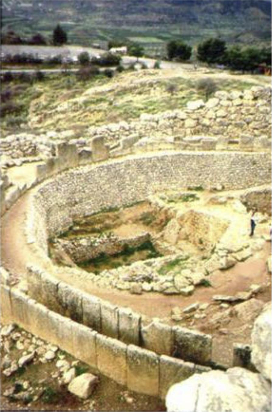 Самым ранним памятником микенской культуры считаются так называемые шахтовые могилы. Первые шесть могил этого типа были открыты в 1876 г. Г. Шлиманом (1822 —1890 гг.) в черте стен Микенской цитадели. Археологи извлекли из них множество драгоценных вещей, сделанных из золота, серебра, слоновой кости и других материалов. Здесь были найдены массивные золотые перстни, украшенные резьбой диадемы, серьги, браслеты, золотая и серебряная посуда, великолепно изукрашенное оружие, в том числе мечи, кинжалы, панцири из листового золота, наконец, совершенно уникальные золотые маски, скрывавшие лица погребенных.