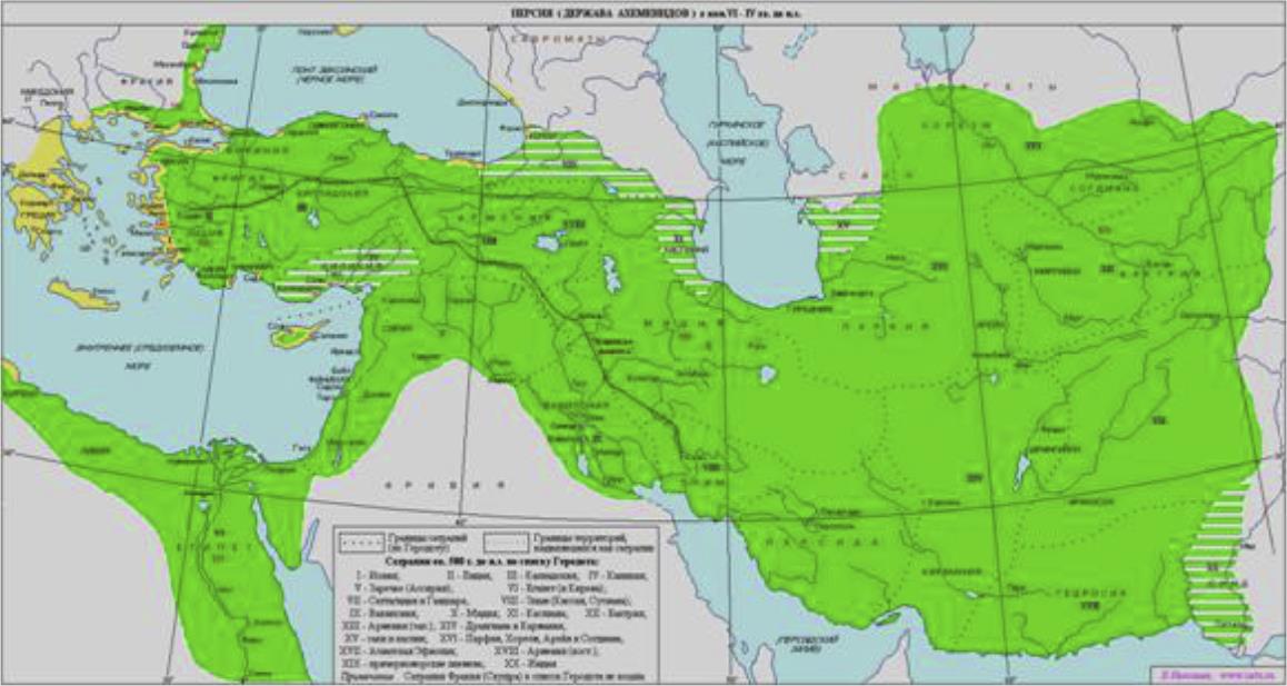 Стабильное развитие греческих полисов оказалось прерванным в результате персидского нашествия. Могущественная мировая держава Ахеменидов в конце VI в. до н. э. захватила греческие города Малой Азии, острова восточной части Эгейского моря. Она вынашивала планы покорения полисов Балканской Греции с целью подчинить воле царя все Восточное Средиземноморье. Греко-персидские войны, начавшиеся в первой половине V в. до н. э., понимались современниками как столкновение двух миров. Они оказали огромное воздействие на развитие греческого общества и его культуры. Война греков с Персией датируется 500 —449 гг. до н. э., т. е. это – одно из самых продолжительных военных столкновений в мировой истории. Оно распадается на пять военных кампаний.