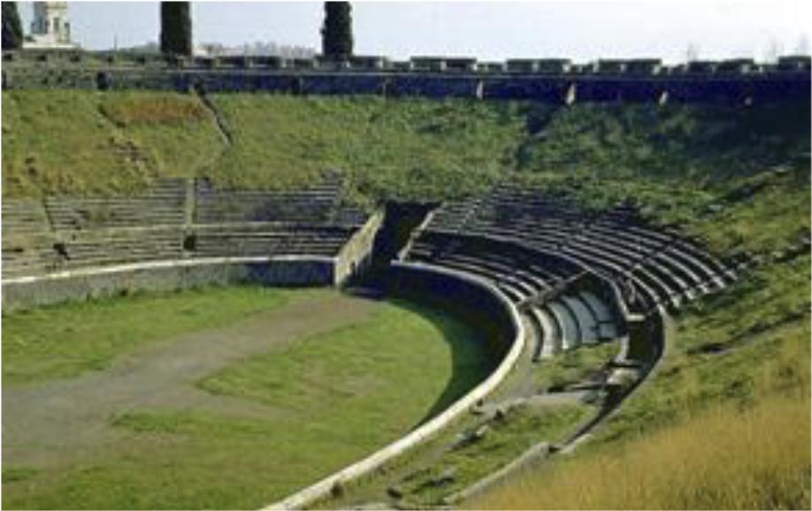 Еще одной особенностью римской культуры, востребованной позже, была любовь к зрелищам. Достаточно рано празднества стали иметь светский, а не религиозный характер: Римские игры, Плебейские игры, Аполлоновы игры, флоралии, сатурналии, луперкалии и др. Необычайно популярны были гладиаторские бои. Для них римляне создали новый тип здания – амфитеатр.