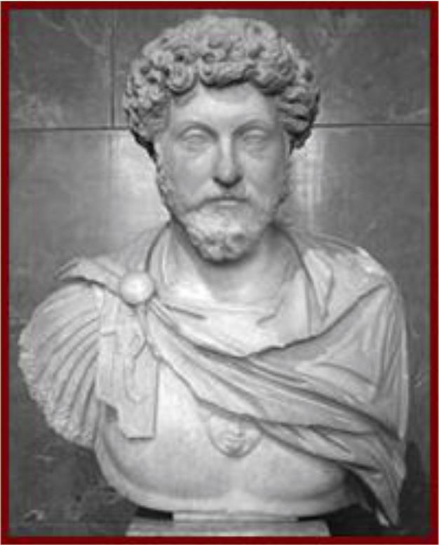 Еще одной знаковой фигурой династии Антонинов был «философ на троне» Марк Аврелий Антонин (121 —180 гг. н.э.), правивший империей с 161 по 180 гг. Историки не зафиксировали ни одного заговора с покушением на его жизнь. Он планомерно продолжал политику укрепления бюрократического аппарата империи, судебной системы, решал проблему материальной поддержки детей малообеспеченных родителей и сирот.