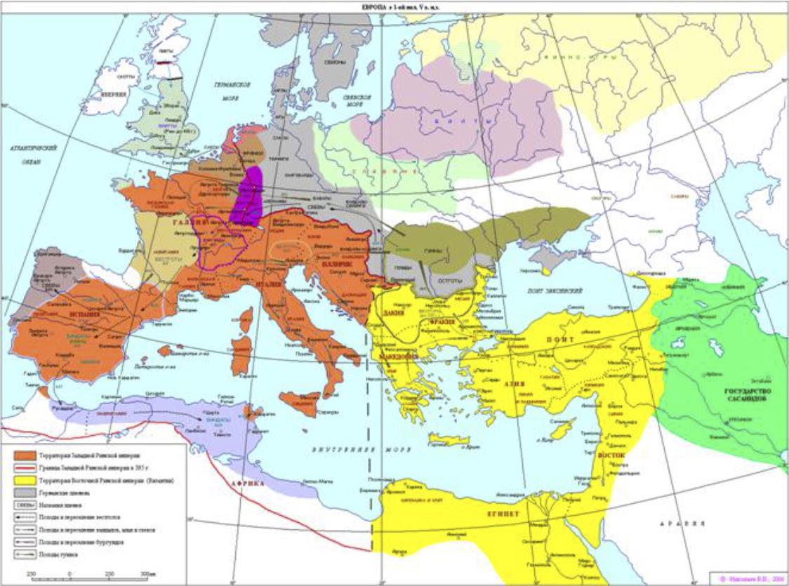Восточная римская империя, Византия, сохранившая сильную императорскую власть и преемственность старых общественных структур, просуществует еще тысячу лет, явив миру великолепный культурный взлет, став духовной основой для российской цивилизации.