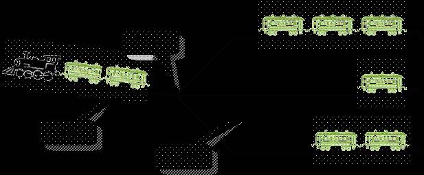 { Отцепляем вагоны от исходного состава и заталкиваем в тупики }