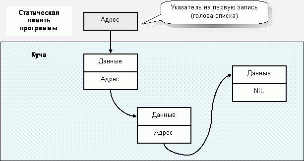 Переменные, порождаемые и исчезающие по мановению волшебника-программиста, называют динамическими. Но исполняет повеления программиста операционная система, – только она вправе хозяйничать в куче. Получив запрос на выделение памяти через процедуру New, система сообщит программе адрес выделенного участка и отметит его у себя как занятый. Теперь никто не посягнет на него, пока программа не освободит участок процедурой Dispose, или не завершится. По завершении программы все занятые ею участки памяти освобождаются системой автоматически.
