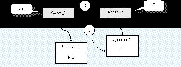 Освобождение кусочка памяти выполняется процедурой Dispose – «освободить». Ей, как и процедуре выделения памяти, нужен лишь один параметр – указатель на ранее выделенный участок памяти. Обратимся снова к примеру.