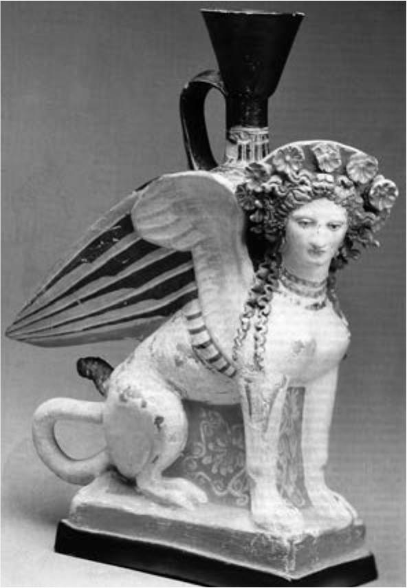 Леки́ф – фигурный сосуд в виде сфинкса. Конец V в. до н. э. Фанагория