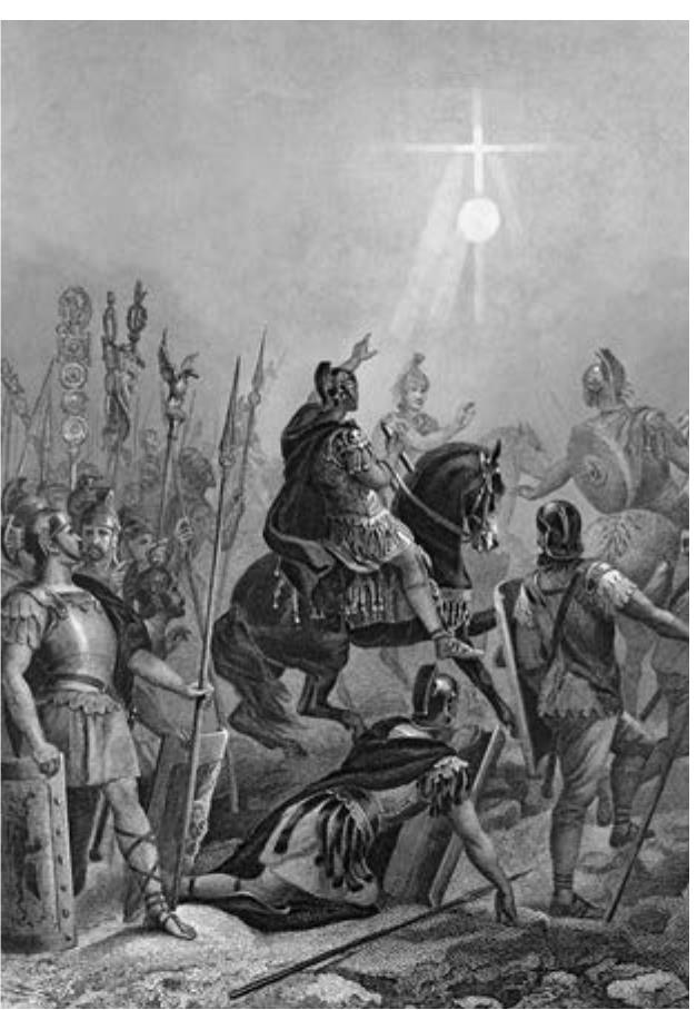 Переломным моментом во взаимоотношениях христианской церкви и государства стало правление императора Константина I (306 – 337). По преданию, накануне решающей битвы с противником Константин увидел в небе монограмму в виде креста из двух греческих букв, с которых начинается имя Иисус Христос. После одержанной победы император издал Медиоланский (Миланский) эдикт (313), уравнивавший в правах христианскую церковь с другими культами. Сам император считал, что он вправе вмешиваться не только в вопросы церковного устройства, но и в догматические споры. Он созывал церковные соборы для обсуждения возникших конфликтов и споров, председательствовал на них и определял их решения. В проведении новой политики Константин встречал сильное противодействие римлян, сохранявших верность языческим верованиям.