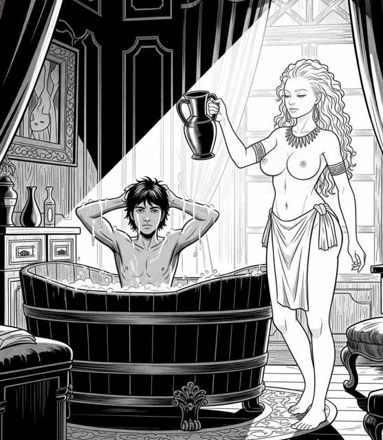 Выставив недоумевающую рабыню, Солано погрузился в бадью. Он мог вполне сидеть в ней, согнув ноги и оставив над поверхностью только плечи. Мыло и мочалка были под рукой, и юноша, просто посидев немного в горячей воде, принялся энергично отмываться от накопившейся грязи.