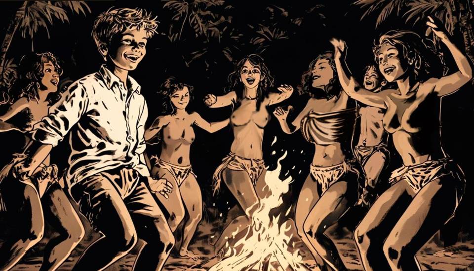 Все мужчины носили только набедренную повязку и соломенную шляпу, и только один щеголял полями от широкополой фетровой шляпы. Именно полями. Тульи у неё не было, и сквозь дыру торчала собственная индейская шевелюра. Женщины носили юбки, и грудь была закрыта только у тех, кому размер желёз мешал работе по дому. Обуви не было вообще.