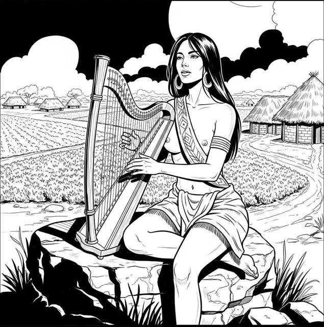 Солано принял пачку и бегло просмотрел её. В основном это были зарисовки птиц, плодов и замысловатых цветов. Было и несколько бытовых сценок из жизни гуарани. На одной из них красивая, улыбающаяся и по пояс обнажённая девушка играла на арфе.