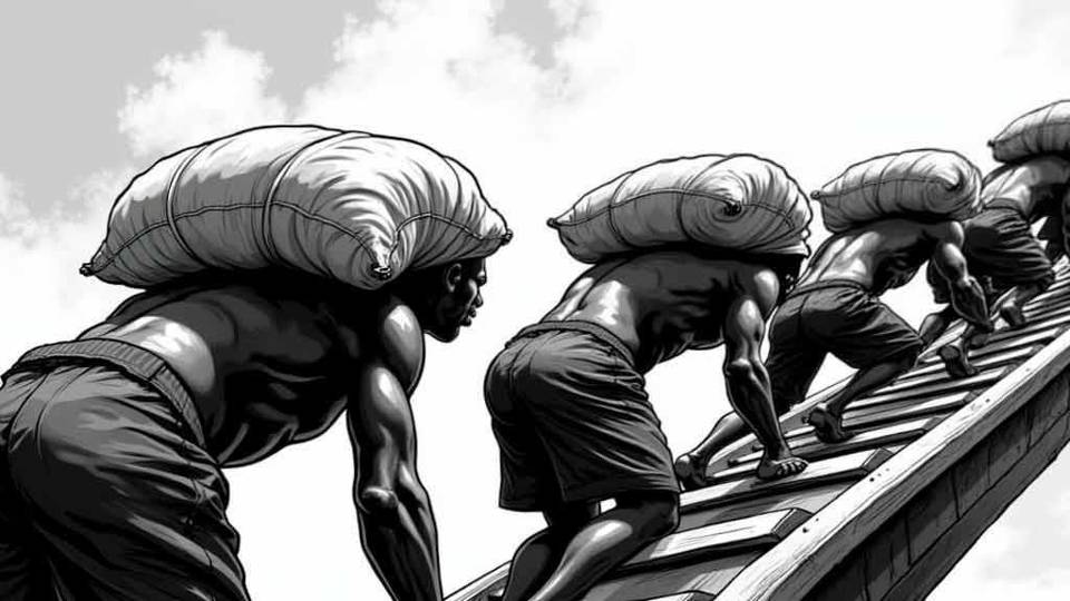 После освобождения пространства Ван Люберс организовал загрузку балласта. Десятки чернокожих рабов, согнувшись под тяжестью мешков, сновали по узким сходням между берегом и бортом. Воздух гудел от монотонного песнопения – ритмичного напева, который задавал темп работе и помогал нести тяжёлую ношу.