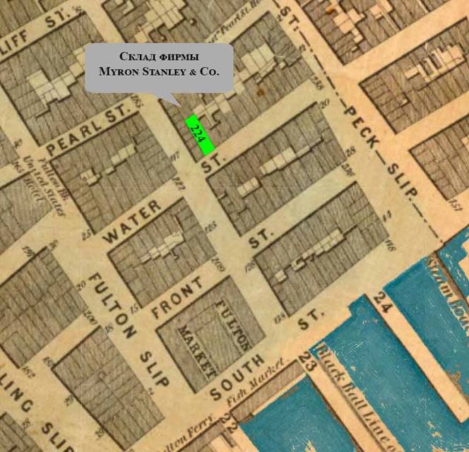 Склад на Уотер-стрит, 244, занимал типичный участок нью-йоркской застройки. Узкий по фронту и вытянутый в глубину. Ширина домов диктовалась максимальной длиной брёвен, которые поддерживали перекрытия. Как правило, это было 5–6 метров.