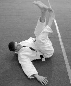 Прежде чем приступить к изучению способов самостраховки, надо занимающихся научить различным перекатам (на спине и по диагонали), поворотам в стороны и выполнению группировок.