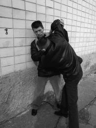 Приведем несколько примеров самообороны с использованием преимущества положения возле стены: