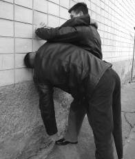 2. Вас толкают сзади лицом в стену.