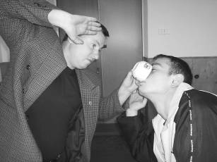 Простейший способ звуколокации при входе в дверной проем – внимательно прислушаться. Возможно, вы услышите, как кто-то переговаривается, называя ваше имя, или крики и ругань пьяной компании и т. д. В таком случае можно позвонить по домофону (если он у вас есть) и предупредить близких, что подымаетесь; мобилизоваться, подготовиться к неожиданным ситуациям. Для увеличения слуховой и обонятельной чувствительности проводится простейший прием так называемой работы с мыслеобразами. Представьте, что ухо увеличивается и растет до огромных размеров, буквально до слоновьих. Нос превращается в длинный хобот. Затем нужно просунуть эти воображаемые органы сквозь дверь (раз они воображаемые, то им можно придать любое свойство, в том числе и проход сквозь стены) и «прозондировать» ими площадь подъезда… Только не надо смеяться, прочитав эти строки. Еще во время Великой Отечественной войны существовали команды так называемых «нюхачей», игравшие роль химразведки. Один из приемов увеличения обонятельной чувствительности, применявшийся ими, заключался в затыкании плотно скатанной ваткой на полминуты или чуть больший промежуток времени вначале одной ноздри, а затем второй. После этого некоторое время (до 15 минут) обоняние было особенно активно. То же самое проделывали пластуны и разведчики со слуховыми проходами для обострения слуха. Если в подъезде находится группа людей, то ее можно распознать по звукам перемещений, речи. Иногда имеется щель между дверным коробом и самой дверью. В нее можно попытаться что-то высмотреть.