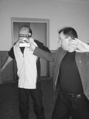 При тренировке в падениях на правый бок встать у левого бока партнера и левую руку соединить с его левой рукой.