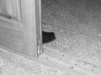 Пересечение линии дверного проема. Открыв дверь внутрь или наружу, сложно определить наличие людей справа или слева по бокам от дверного проема. Не все носят с собой зеркальце на телескопической ручке, как в американских боевиках. Простой способ: посмотри вниз и вбок от короба справа и слева. Если человек стоит близко к проему, то будут видны края носков его обуви.