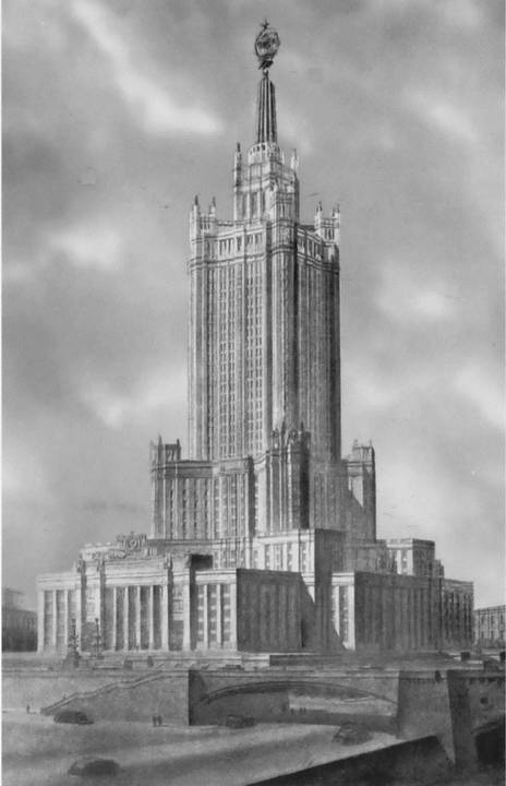42. Здание высотной гостиницы в Дорогомилове. Гостиница «Украина» (Москва). Совместно с А.Г. Мордвиновым. 1947—1948 гг. Проект удостоен Сталинской премии за 1948 год.
