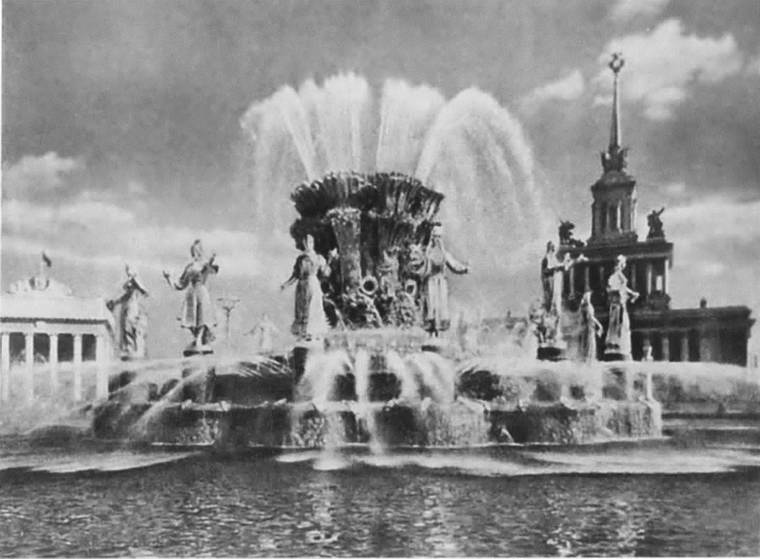 Фонтан «Дружба народов». Архитекторы К.Т. Топуридзе, Г.Д. Константиновский, скульпторы И.М. Чайков, 3.В. Баженова, Л.И. Тенета, Н.В. Рылеева и др. 1954 г.