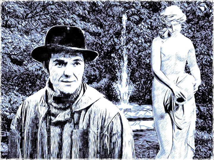 Четыре аллеи сходились вместе, а посередине стояла статуя из темной бронзы, изображавшая зодиакального Водолея. Из его рога, направленного в небо, тонкой струйкой стекала вода – в широкий бассейн черного полированного гранита.