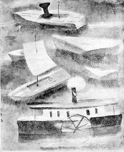 А на лужах кораблей много-много плавает: и деревянные, и бумажные, и всякие… А у Мити так – жестяной, с трубой, с колесом, – настоящий.