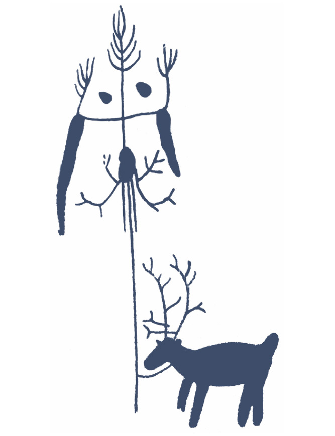 Три части мирового древа – крона, ствол, корни – символизировали три мира шаманского космоса, что подчеркивалось изображением в соответствующей части особых существ. У кроны дерева рисовали птиц, рядом со стволом – копытных животных, у корней – змей, ящериц, лягушек, рыб.