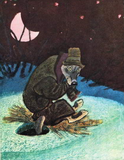 Волк и пошёл на реку, опустил хвост в прорубь и начал приговаривать: