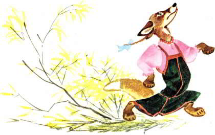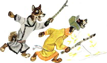 Волк прыгал, прыгал, оторвал себе хвост и пустился без оглядки бежать.