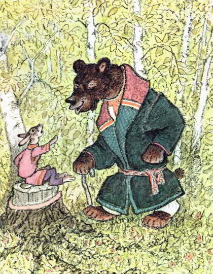 Вот опять сидит зайчик под берёзкой и плачет. Идёт мимо медведь: