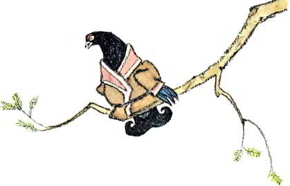 Дрозд горевать, дрозд тосковать, как лисицу вынимать. Вот начал он палки в яму метать. Набросал столько, что лисица выбралась по палкам из ямы и возле самого дерева, легла, протянулась.