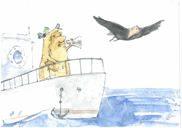 Несмотря на молодость, ворона была наблюдательной и очень-очень умной. Её догадка оказалась верна. Как только лесную пернатую заметила Кулебяка, которая работала на пароме контролёром и сторожем, она оглушительно засвистела.