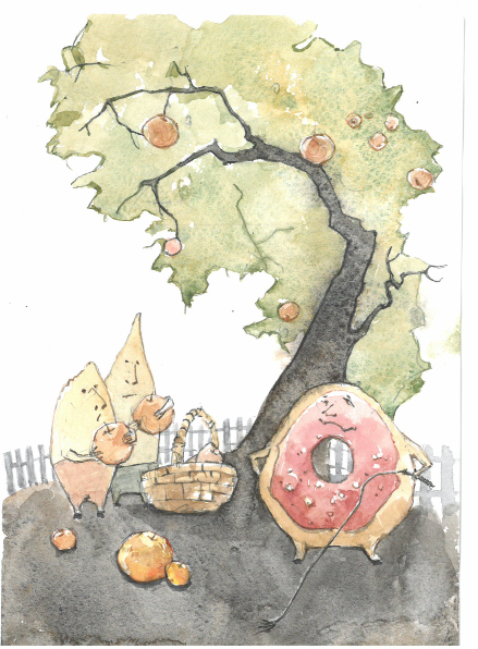 Директор консервного завода Пончик лично следил за тем, как его подопечные Сладкие Пирожки собирали самые спелые и сочные плоды. Увидев парящую в небе чёрную зловещую птицу, работники от страха бросились врассыпную.