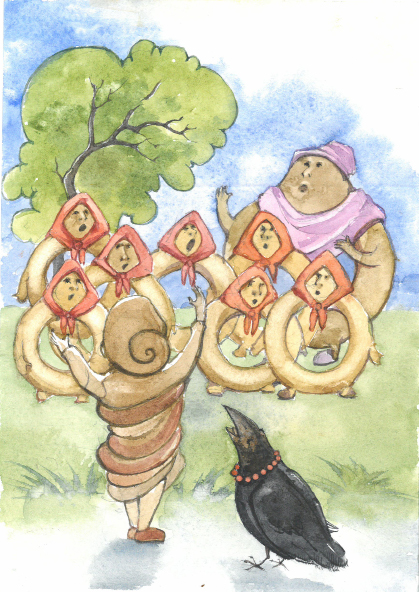 – А ещё потомки Колобка-а-а-а… – вытирая слёзы крылом, запричитала «садовая голова».