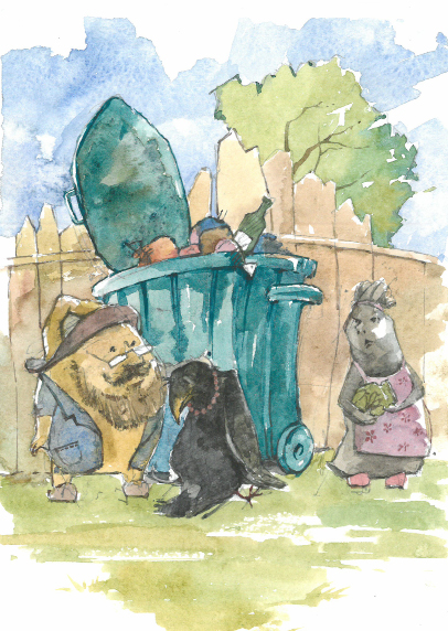 Ворона решила, что не будет долго задерживаться рядом с горельефом, изуродованным хлебным изделием в виде хлебного памятника. Сделав крутой вираж и перелетев через Дрожжевую улицу, она неожиданно вновь оказалась в Мучном переулке, в том самом, где её заботливо прислонил к помойке дедушка Тёртый Калач.