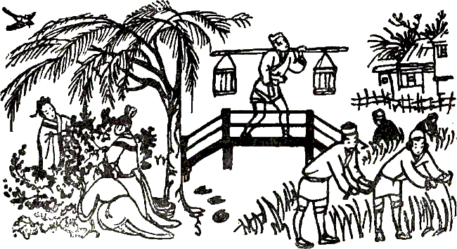 Жена Вань Сы шла впереди и так ловко умела находить невидимую тропинку, что незнакомец ни разу не споткнулся и не оцарапал себе ног. Раза два – три встречали они людей, несших связки хвороста. Незнакомец и женщины кланялись и желали добра, но человек под тяжелой пошей не мог ни поднять головы, ни поклониться, а только бормотал: «Хао! Хао!»– как принято отвечать на привет.