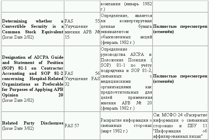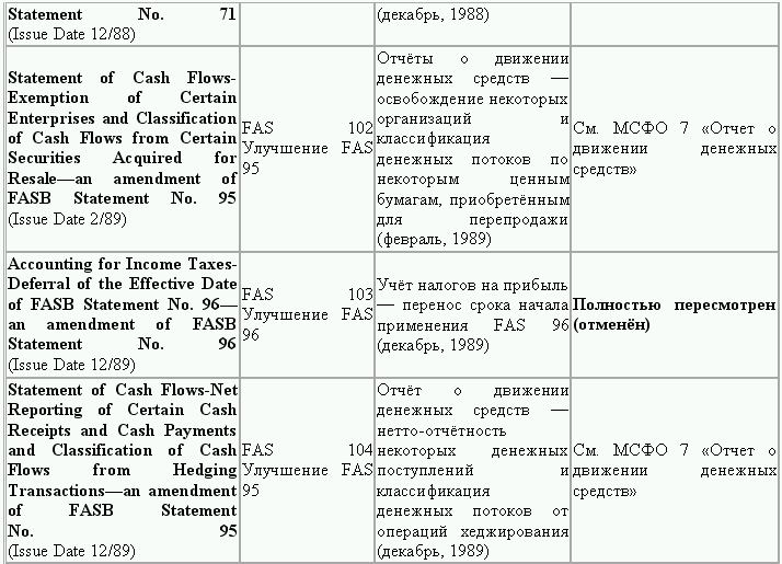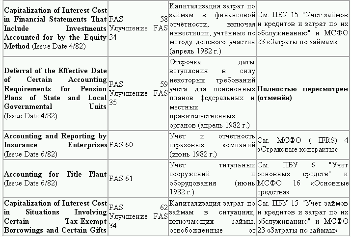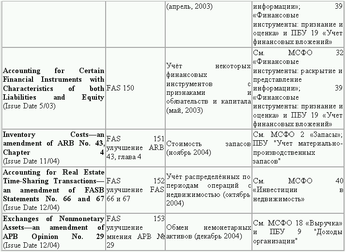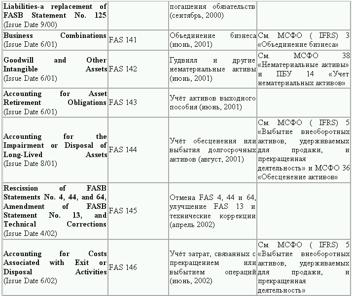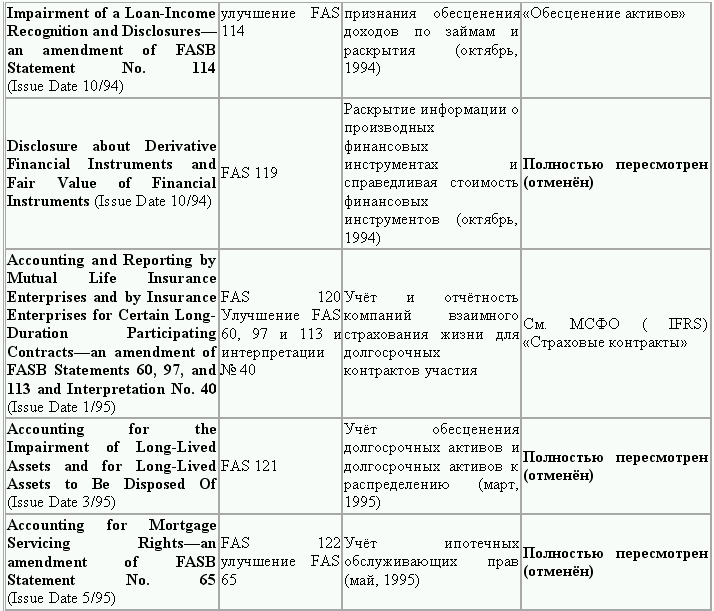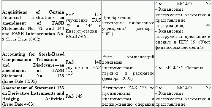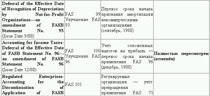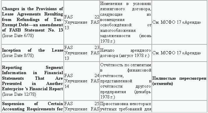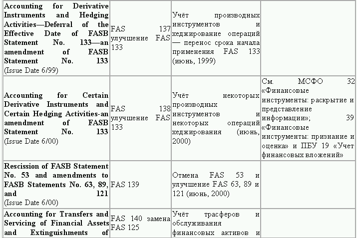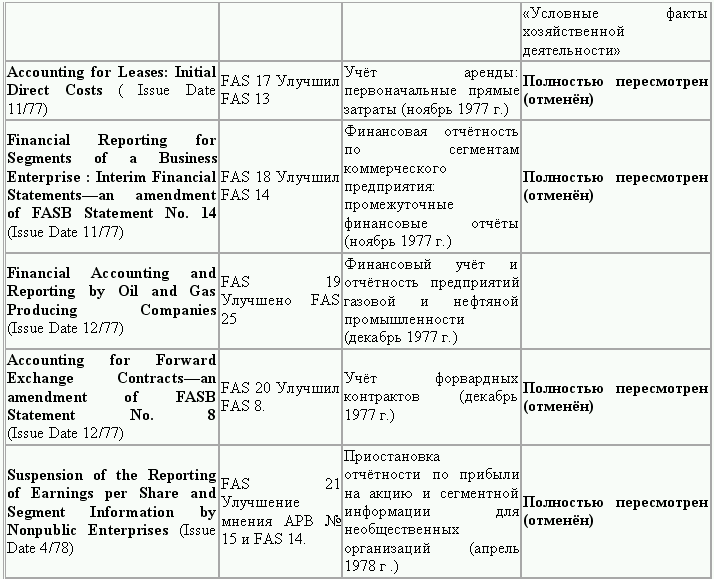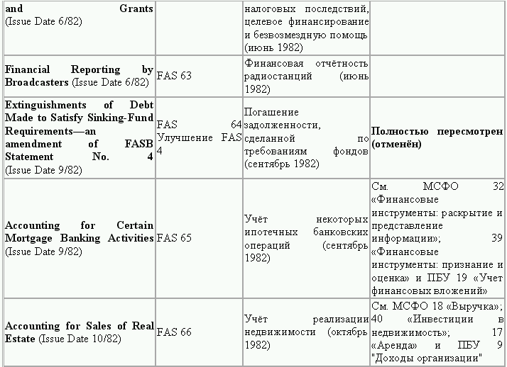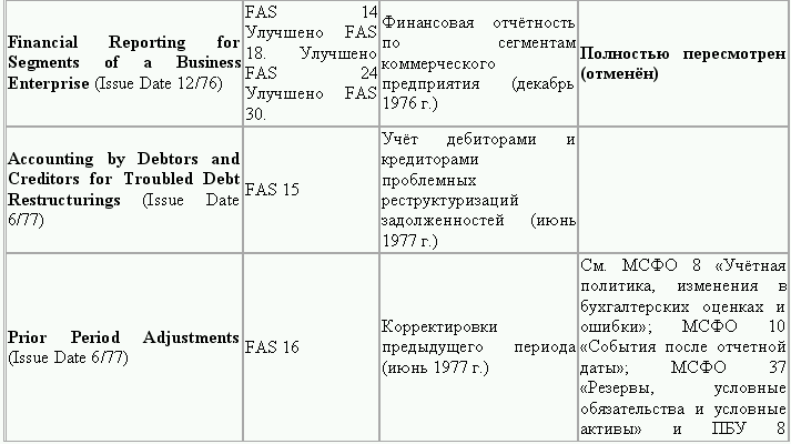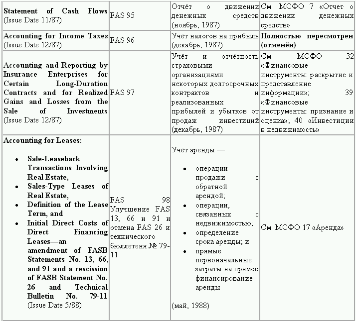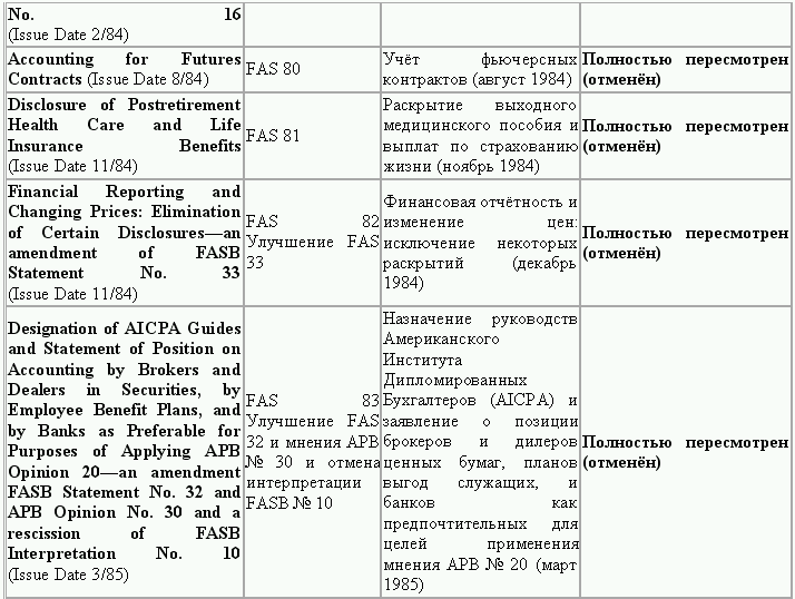С момента своего образования в 1973 г. Совет по стандартам финансового учета выпустил свыше 100 положений о стандартах финансового учета и шесть Положений о концепциях учета. Из их числа лишь около 10 % связано с решением новых проблем финансового учета и столько же – с решением проблем, специфичных для той или иной конкретной отрасли. Остальные же 80 % приходятся на пересмотр ранее принятых стандартов.
