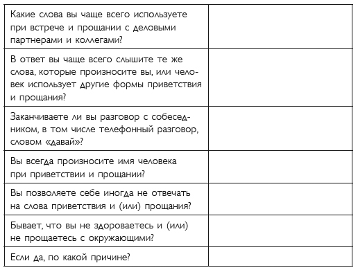 • Запишите на диктофон все используемые вами варианты приветствия и прощания, меняя громкость голоса и интонацию. Произнесите эти слова с улыбкой и без улыбки.