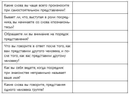 • Выучите схему представления и настройтесь, что в следующий раз, когда вы будете представляться самостоятельно или выступать в роли посредника, вы все сделаете правильно. Как только вы начнете сомневаться в своих словах и действиях, все «пойдет не так». Настрой очень важен.