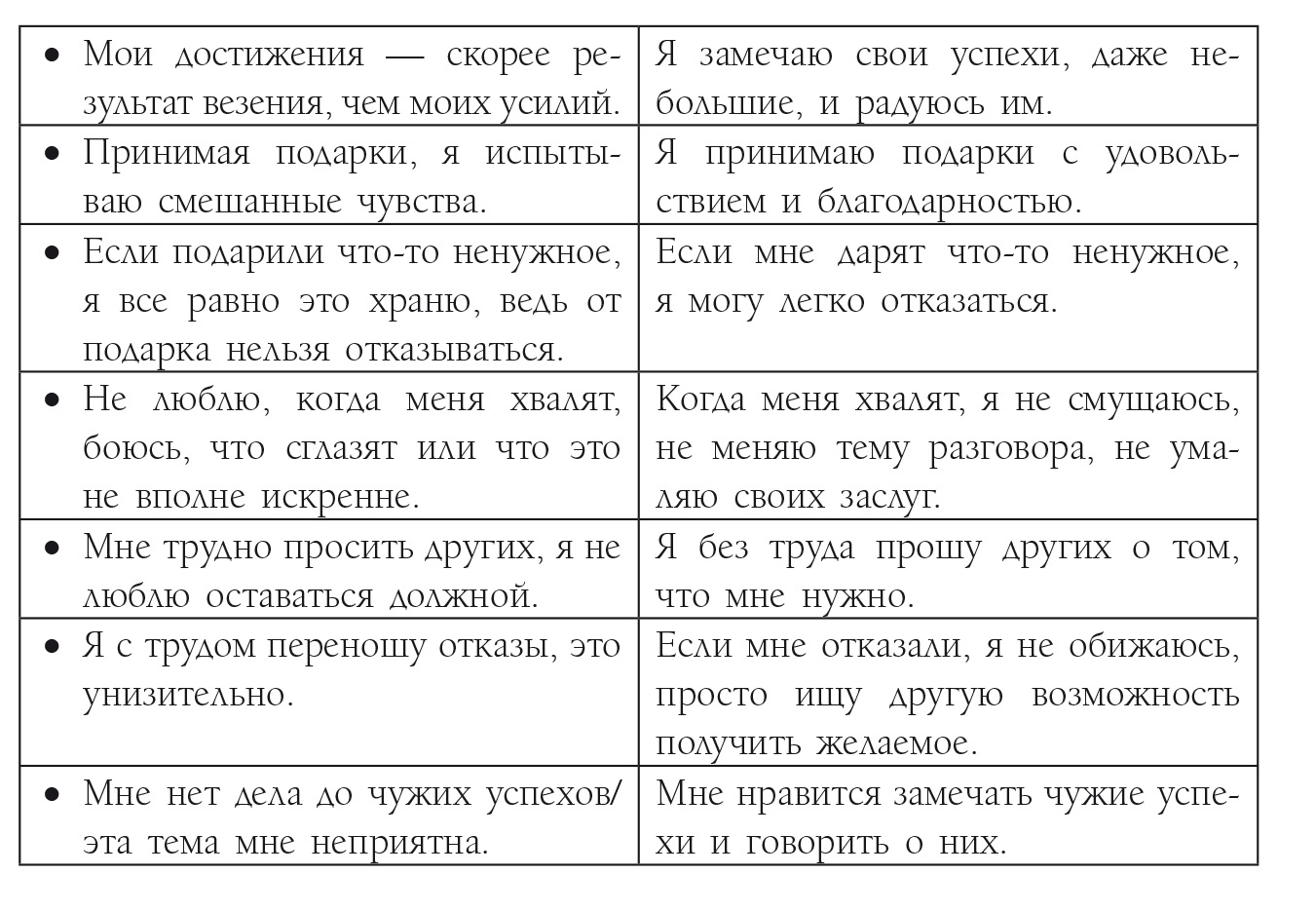 «Да» в свой адрес связано с уважением к своим чувствам, возможностью не пренебрегать ими. Внедряя его в свой повседневный обиход, мы постепенно увеличиваем свою уверенность и спокойствие.