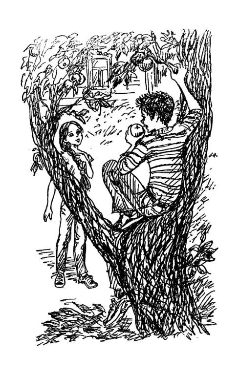 На дереве сидел темноволосый парень лет четырнадцати и с любопытством смотрел на нее. Девочка не знала, что ей делать: сделать вид, что ничего не заметила и уйти, или…