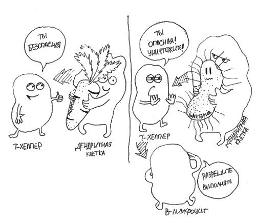 Аллерген должен иметь такое строение, чтобы клетки иммунной системы могли его распознать. Задача нашей иммунной системы – сохранять белковое постоянство организма. Клетки иммунной системы постоянно сканируют все, что встречают на своем пути, и имеют целую систему для считывания структуры белков. Аллергия возникает из-за сбоя в распознавании чужеродных белков: клетки иммунной системы путают безопасный белок с опасным и начинают с ним сражаться. Из-за того, что иммунная система умеет распознавать только определенный вид молекул, в абсолютном большинстве случаев аллергены являются белками или гликопротеидами (белками, соединенными с углеводными «хвостиками»). [38, 188]