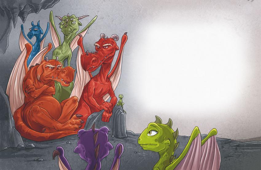 Мона стояла посреди пещеры и застенчиво глядела по сторонам. Множество драконов всех видов и цветов сидели на уступах скалы. Они рассматривали Мону. Некоторые дружелюбно и с любопытством. Но многие презрительно фыркали, не скрывая своей неприязни. Грудки некоторых начинали окрашиваться красным цветом.
