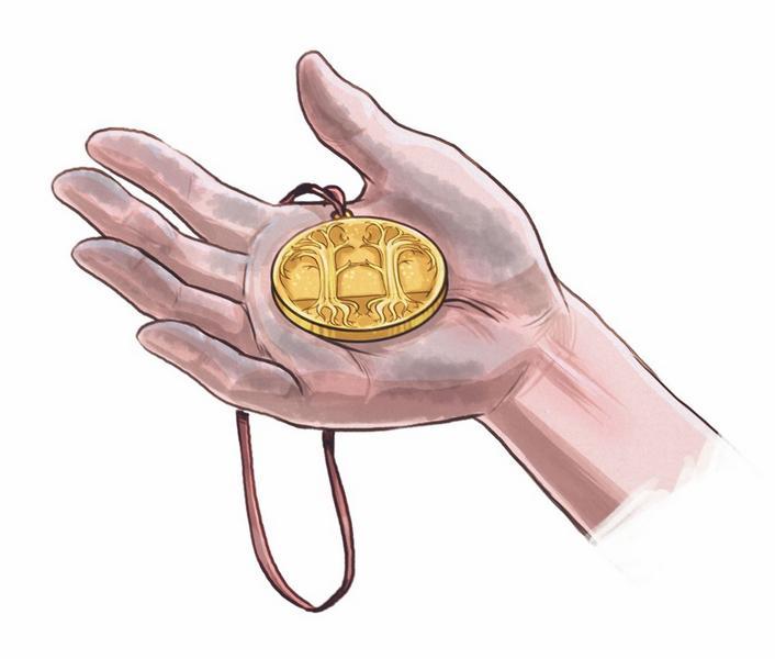 Он примостился под широким папиным крылом и вытащил спрятанный под рубашкой золотой амулет. Украшение сверкало на цепочке на его шее. Днём он прятал его, потому что драконы как сороки. Их притягивает всё, что блестит. Вико принялся разглядывать амулет. На нём были изображены два деревца. Их ветви напоминали переплетённые пальцы рук.