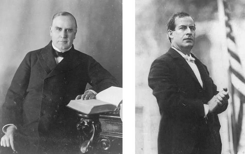 В ходе выборов 1900 года за президентское кресло боролись республиканец Уильям Мак-Кинли (слева), сторонник Американской империи и ярый защитник интересов истеблишмента востока США, и демократ Уильям Дженнингс Брайан (справа), популист со Среднего Запада, решительно выступавший против имперских замашек. К глубокому сожалению, после победы Мак-Кинли предостережения Брайана против имперской политики были позабыты.