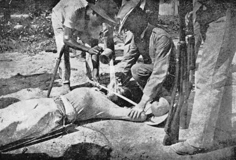 Американские солдаты пытают филиппинца. По словам одного газетчика, «наши солдаты вливают в него соленую воду, чтобы заставить говорить».