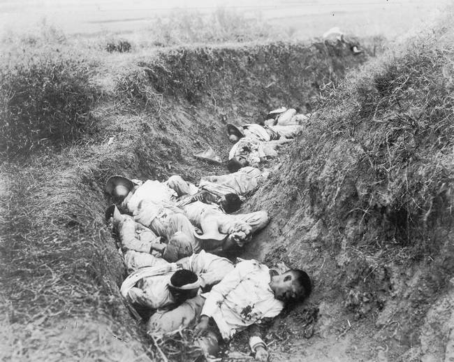 Филиппинцы всячески поддерживали повстанческую армию, снабжали ее бойцов провизией, давали им пристанище. Американские войска использовали тактику, благодаря которой им удалось одержать верх над коренными американцами, и действовали с крайней жестокостью. После очередной засады, в которую попали американцы, генерал Ллойд Уитон отдал приказ уничтожить все поселения в радиусе 30 километров и убить всех их жителей. Когда повстанцы внезапно нанесли удар по американской базе в городке Балангига на острове Самар, в результате чего погибло 54 из 74 солдат, полковник Джейкоб Смит приказал своим подчиненным казнить всех местных жителей старше десяти лет и превратить остров в «безлюдную пустыню» 39. Распоряжение было выполнено, причем некоторые солдаты делали это с удовольствием. В письме своим домашним один из них написал: «Мы загорелись боевым духом, все хотели отомстить этим “ниггерам”… Охота на кроликов даже близко не идет в сравнение с такой захватывающей охотой на двуногую дичь» 40. Сотни тысяч филиппинцев были брошены американскими офицерами в концентрационные лагеря.
